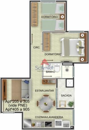 Apartamento em Novo Hamburgo com 2 dormitórios e 1 vaga de garagem;* Cozinha com área de serviço;* Estar/Jantar com sacada e espera p/ churrasqueira* Gás, água e luz com medidores individuais;* Esperas para ar-condicionado split;* Frente Oeste;* 5 apartamentos por andar;* Gás Central;* Playground;* Espaço para serviços;* 10 Andares;* Pilotis e subsolo * Elevador e escada protegida* Minha Casa Minha Vida - Financiamento Bancário